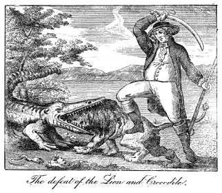 * The Abyssinian custom of feeding upon live flesh seems to have provoked a chorus of incredulity from all quarters. Among others Peter Pindar makes it the subject of one of his satirical flings:-"Nor have I been where men (what loss alas!)Bruce was also ridiculed in an after piece acted in the Haymarket in which Bannister performed the part of Macfable, a Scotch travelling impostor, and the hits against his travels could not be mistaken.