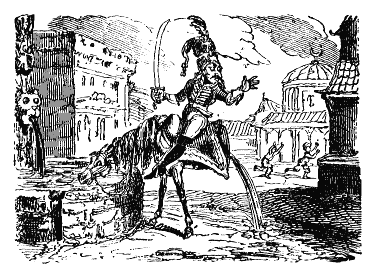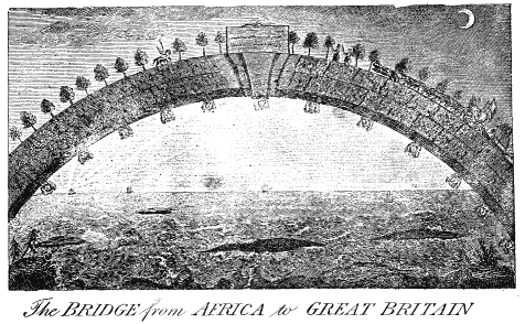 We thus see that the six editions (the second to the seventh) were issued in 1793, but as the plates to the seventh edition (and doubtless to the second and other editions) bear the imprint, "Published as the Act directs, for G. Kearsley, at 46, in Fleet Street, London, 1786," it becomes evident that the first edition was issued in that year; and that being four years before the publication of Bruce's Travels, which appeared in 1790, the work could not have been written to ridicule them. In fact, recent investigation has rendered it almost a certainty that the original author of "Munchausen's Travels" was a learned but unprincipled scholar, of the name of R. E. Raspe, who had taken refuge in this country from the pursuit of justice (vide Gentleman's Magazine, January, 1857), and that many of his stories are of ancient date, and current in various countries. Many are to be found under the title of "Mendacia Ridicula," in vol. iii. of "Deliciae Academicae," Heilbron, 1665; that of "sound being frozen in a post-horn" is from Rabelais, appears to have been known also in Spain and Italy, and is said by a writer in Notes and Queries (No 61, 1850), to be traceable to one of the later Greek writers, from whom Jeremy Taylor, in one of his sermons, borrows it as an illustration; while the story of "the horse cut in two by the portcullis" is translated by Lady C. Guest, in "The Mabinogion," from an ancient Welsh manuscript.