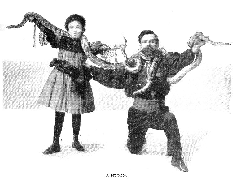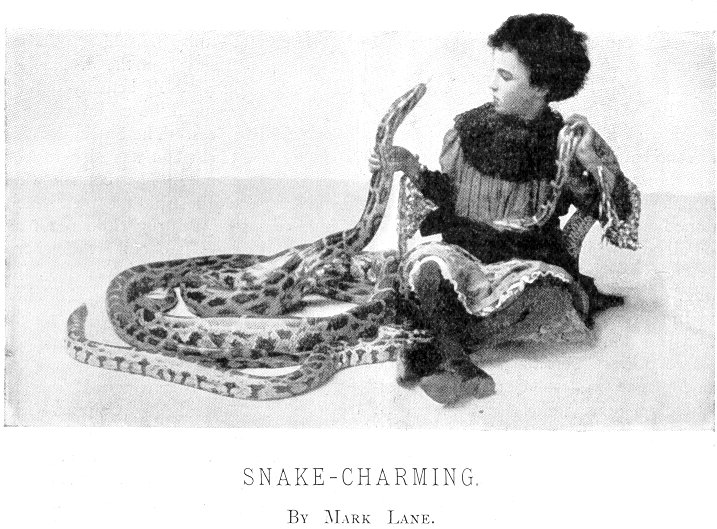 Captain De Voy has been associated with these entertainments for nearly sixteen years. His wife was a well-known snake-charmer under the stage name Mlle. Onzalu, and for her he used to tame and train the snakes before she performed with them. The particulars given in this article have been furnished by Captain De Voy, who very frankly and courteously consented to afford me every information in his power.