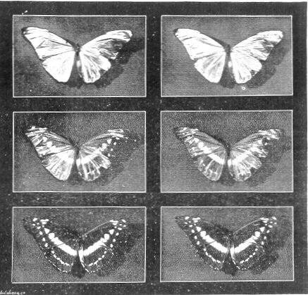 The three images of the Kromogram, which are similar in appearance to ordinary lantern slides, represent, by differences in their light and shade, the distribution and proportions of the three simple colours in the object photographed. These three transparencies, therefore, though themselves of no colour, form a true colour record, just as the wax cylinder of the phonograph, although emitting no sound itself, preserves the record of sound, and the Kinetoscope or Kinematograph ribbon contains the record of motion.